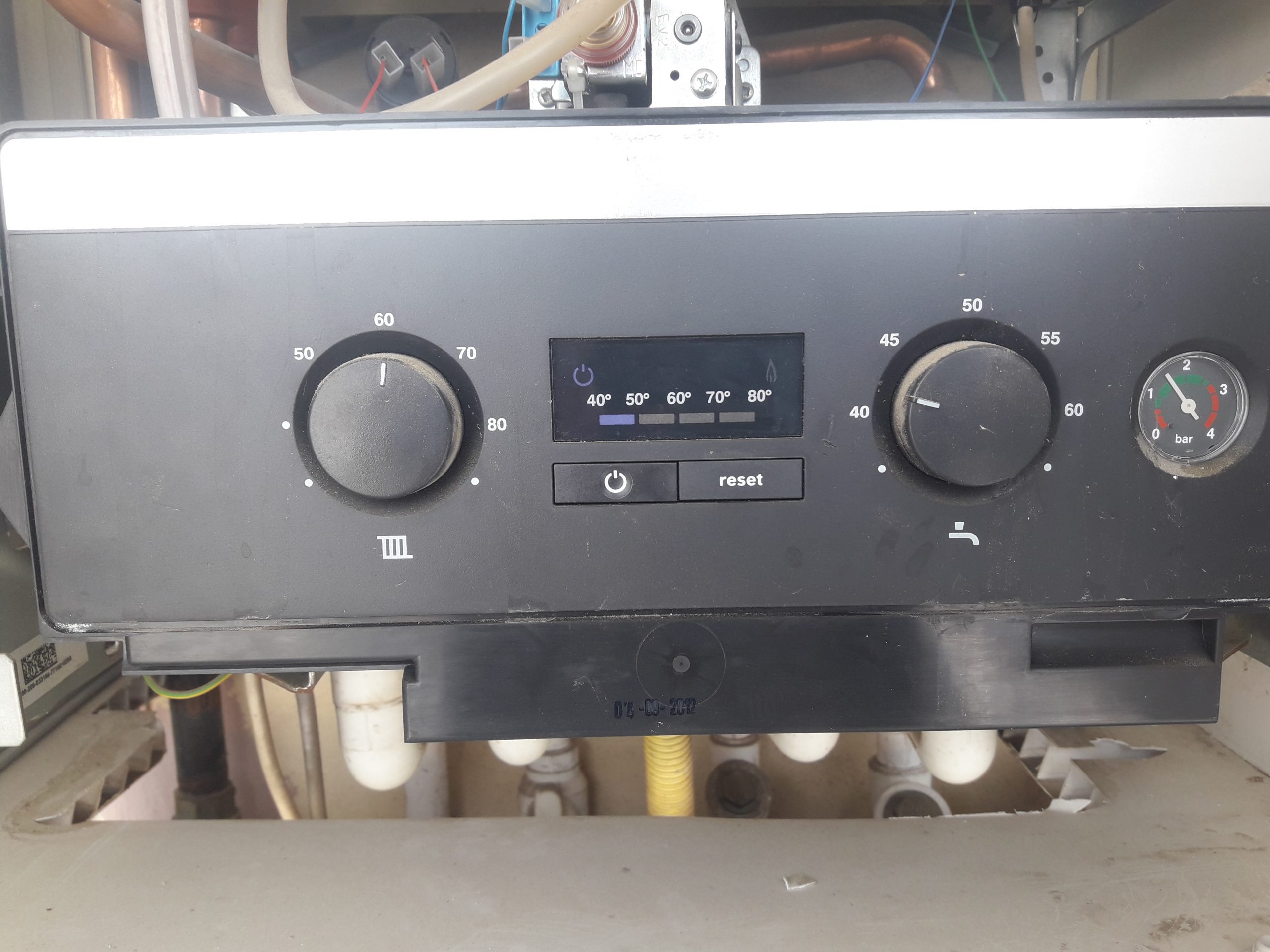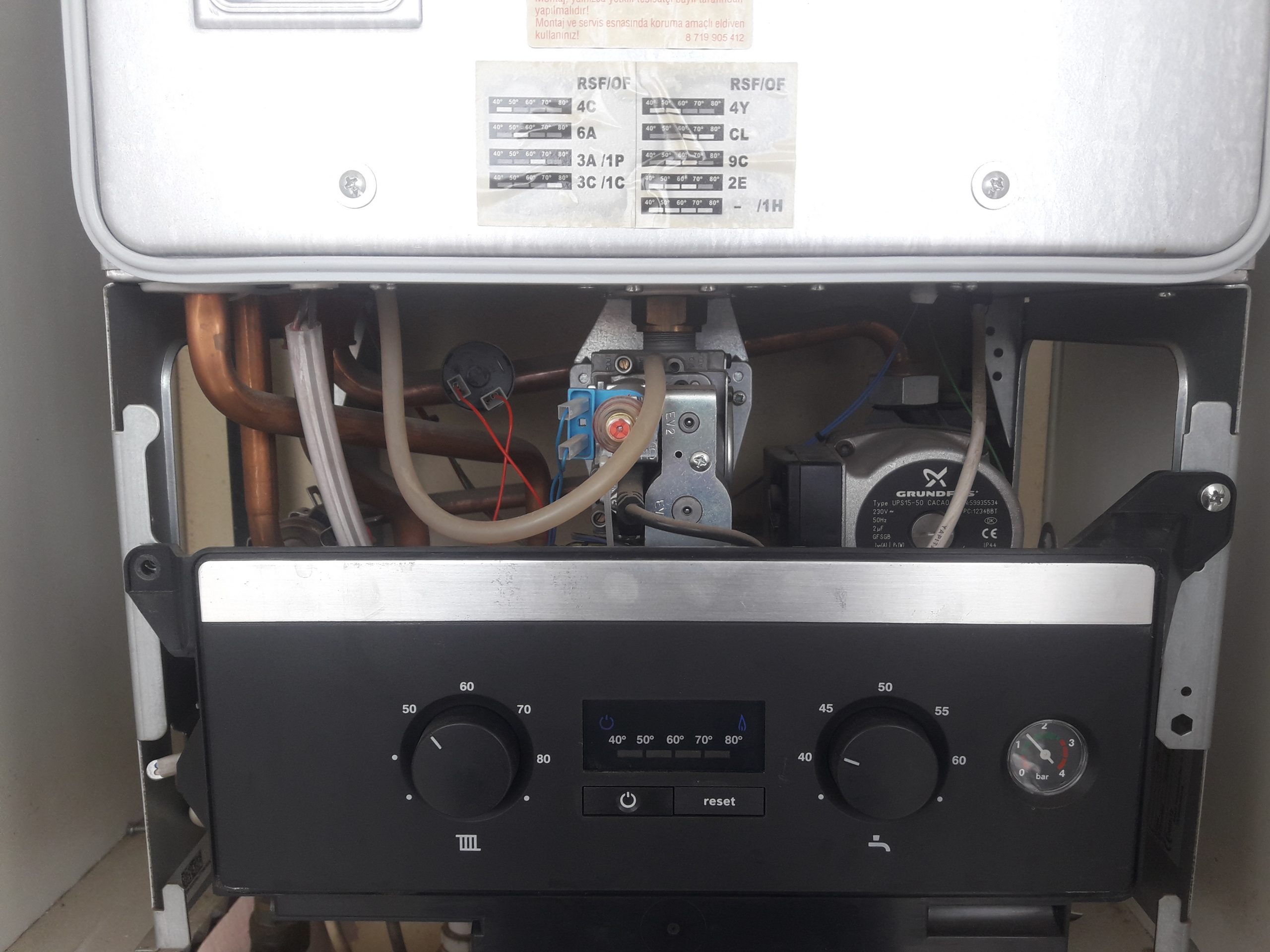 40 derece yanıp sönmesi hala devam etmesi durumunda kombi reset düğmesine 5 saniye basılı tutunuz ve komiği resetleyin.